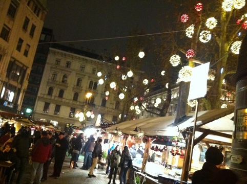 Am 23.12. Erstrahlen zum letzten Male die Lichter der zahlreichen Buden des Weihnachtsmarktes auf dem Vörösmarty Platz.