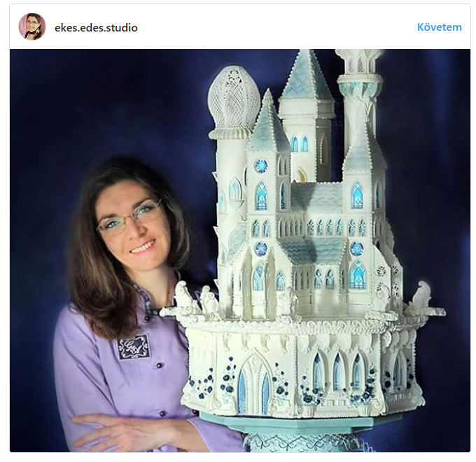 In her blog Anikó says that she designed her cake for two week long and her after that her fairytale castle fled her to the victory. The actual cake is 120cm high and 4 kilos hard. But not just the creation was hard, she needs to get her castle to the competiton. But her husband helped her with the delivery, and he made a cool Led-lighting on it, to made the cake more incredible.