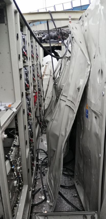 Im Inneren einer E-Lok hat es eine Explosion gegeben am Morgen. Das Metalldach wurde durch die Druckwelle meterhoch in die Luft geschludert und landete auf den Schienen zwischen einem Güterzug und einem Personenzug. Die E-Lok wurde stark beschädigt. 46 Personen mussten unverletzt aus dem zug geführt werden mit mit einem Schienenersatzbus weiter befördert werden.
