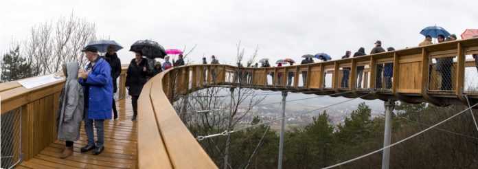 Ab jetzt ist der Pannonhalma Rundweg noch spektakulärer für die Wanderer. Die Benediktinerabtei Pannonhalma, ein Teil des Weltkulturerbes, ist eine beliebte Attraktion für Wanderer und Erholungssuchende hoch oben auf dem Berg mit wunderschöner Aussicht. Eine neue Attraktion, eine Promenade bzw. ein Weg führt über die Laubkronen und man ist noch viel näher an der Natur. Die fast 80 Meter lange Promenade über den Bäumen ist auch für Rollstuhlfahrer zugänglich.