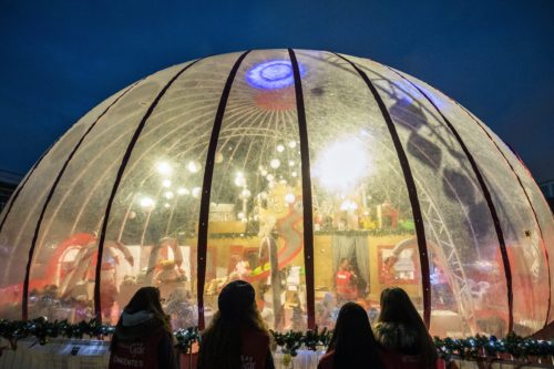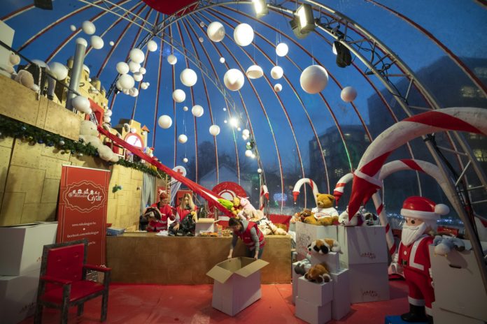 A MikulásGyár karitatív akció adománygyûjtõ sátra a budapesti Millenáris Parkban 2018. december 12-én.