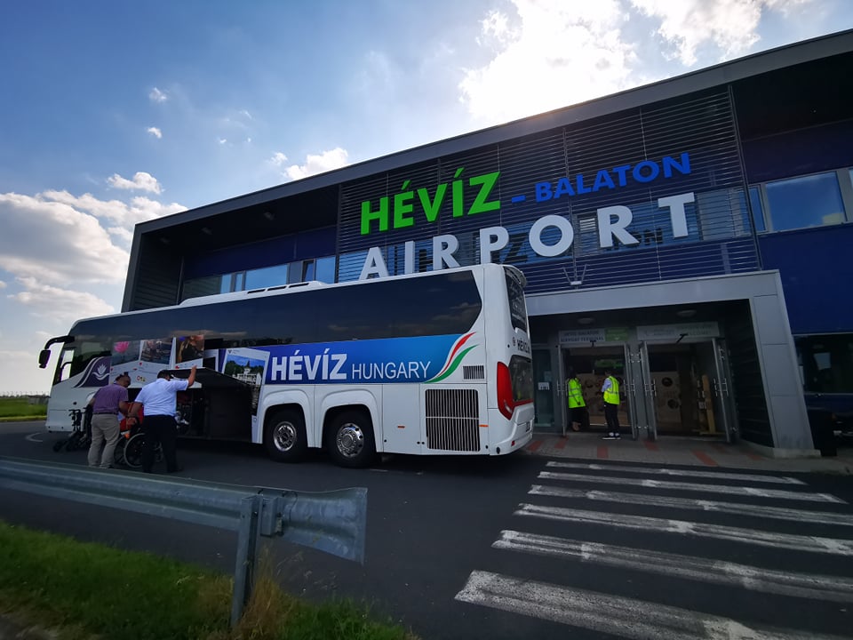 68 Fluggäste und gleichzeitig Héviz Kurgäste des Veranstalters Mutsch Reisen wurden beim Aussteigen begrüßt.