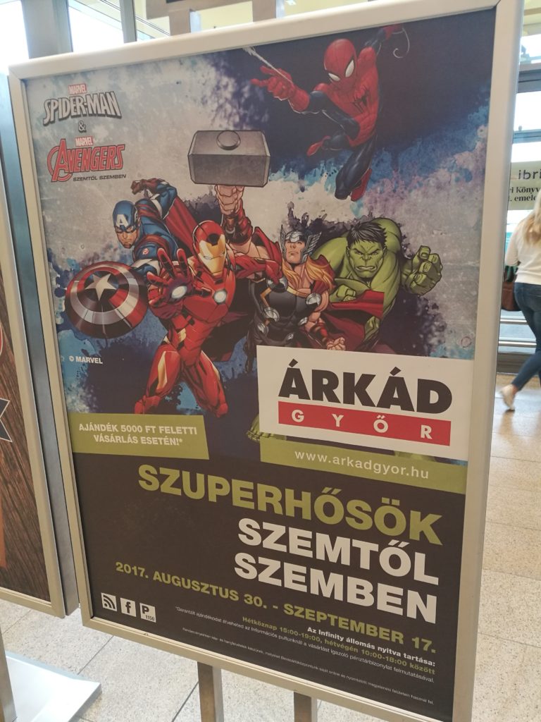 Eine beeindruckende Kulisse derzeit im Einkaufscenter Árkád in Györ. Hier hat man die Superhelden wie Spiderman oder Captain Amerika, etc. in eindrucksvollen Szenerien aufgebaut. Zum Anfassen nahe und so sind auch bereits zahlreiche Selfies von Einkaufsgästen mit den Helden im Umlauf.