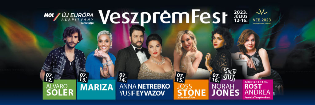 Vom 12. bis 16. Juli findet in Veszprém eines der beliebtesten Sommer-Musik-Events unter freiem Himmel statt, das VeszprémFest. Mit dem Ziel, höchste internationale Standards und Qualität zu erreichen, kommen jedes Jahr Künstler aus den Bereichen Oper, Jazz, Klassik, Welt- und Popmusik nach Veszprém. An fünf Tagen erwarten die Besucher sieben hochkarätige Künstler an zwei Veranstaltungsorten. In diesem Jahr sind unter anderem der junge spanischer Sänger Alvaro Soler, die klassische Sopranistin Anna Netrebko und die mit einem Grammy ausgezeichnete Sängerin des Hip-Hop-Genres, Joss Stone, dabei.