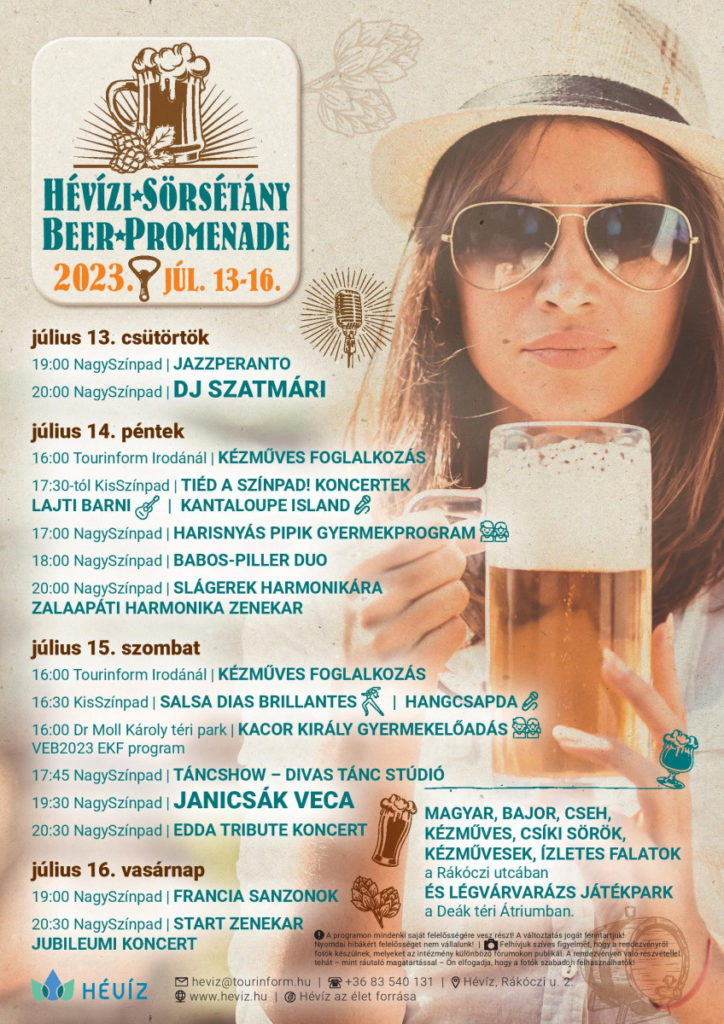 Vom 13. bis 16. Juli sind Bierliebhaber in Hévíz willkommen. Biergärten, handwerklich gebraute Biere, Snacks, Hüpfburgen, Spiele, Konzerte und gute Laune erwarten die Teilnehmer jeden Tag. Die viertägige Veranstaltung bietet ein breites Spektrum an Aktivitäten, einen Flohmarkt, leckeres Essen und 30 bis 40 Craft-Biere.