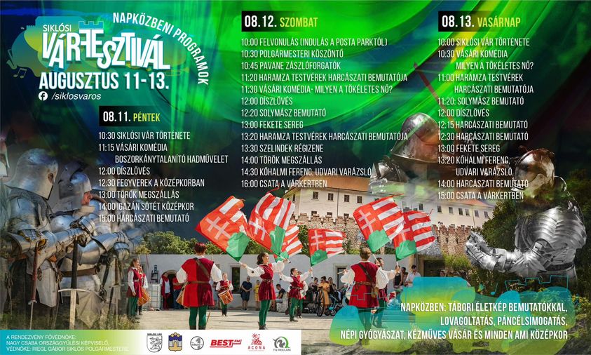 Vom 11. bis 13. August findet das Burgfestival statt, das die beliebteste Veranstaltung der Siklósi Burg ist. Tagsüber steht die Tradition im Vordergrund, während abends Konzerte diejenigen, die feiern möchten, erwarten. Während des Festivals erwacht das Mittelalter innerhalb der Burgmauern zum Leben, Ritterturniere, spektakuläre Paraden und Kampfszenen unterhalten die Gäste. Außerdem gibt es einen Markt und ständige Bühnenaufführungen, die die Besucher begrüßen.