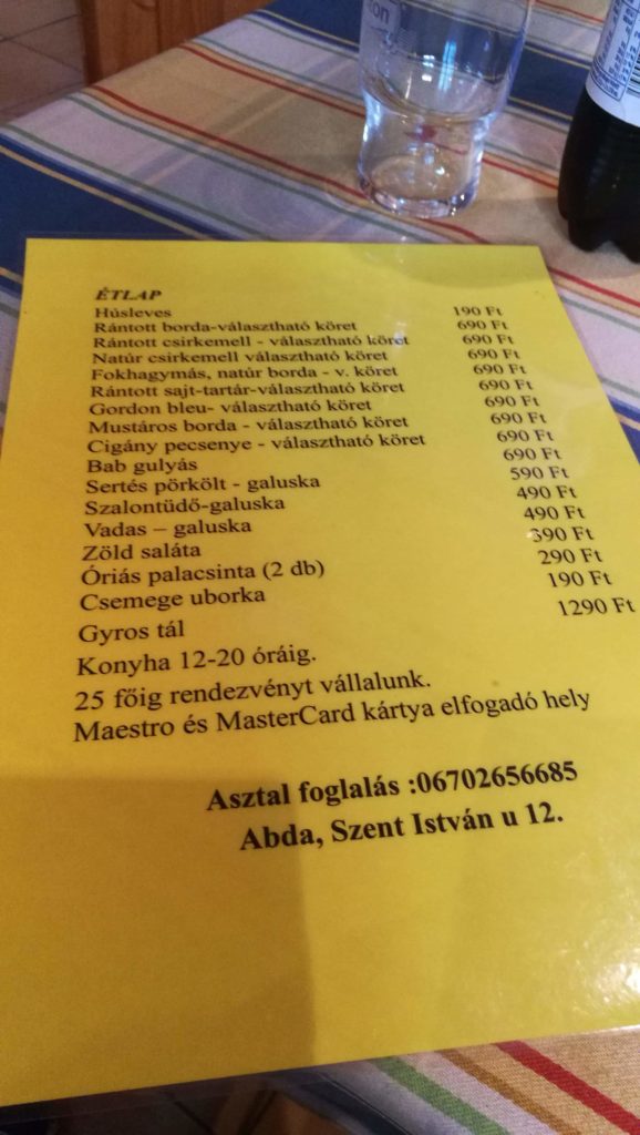 Man kann es eigentlich kaum glauben… In einem Restaurant in Abda gibt es extrem günstige Essensangebote. Die Gerichte werden durchschnittlich für 690 Forint angeboten. Wir sind der Sache auf den Grund gegangen und haben uns an einem Sonntagmittag auf nach Abda gemacht ins Eszem – Iszom Étterem.