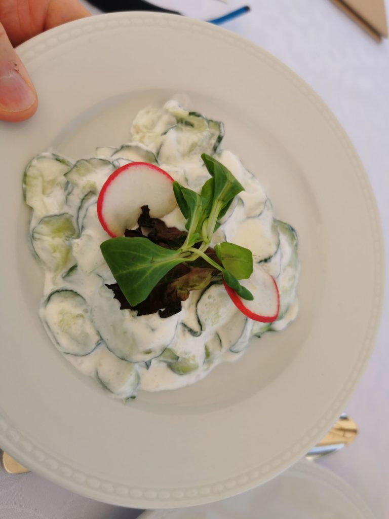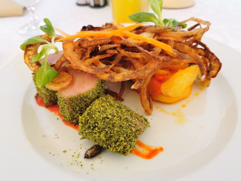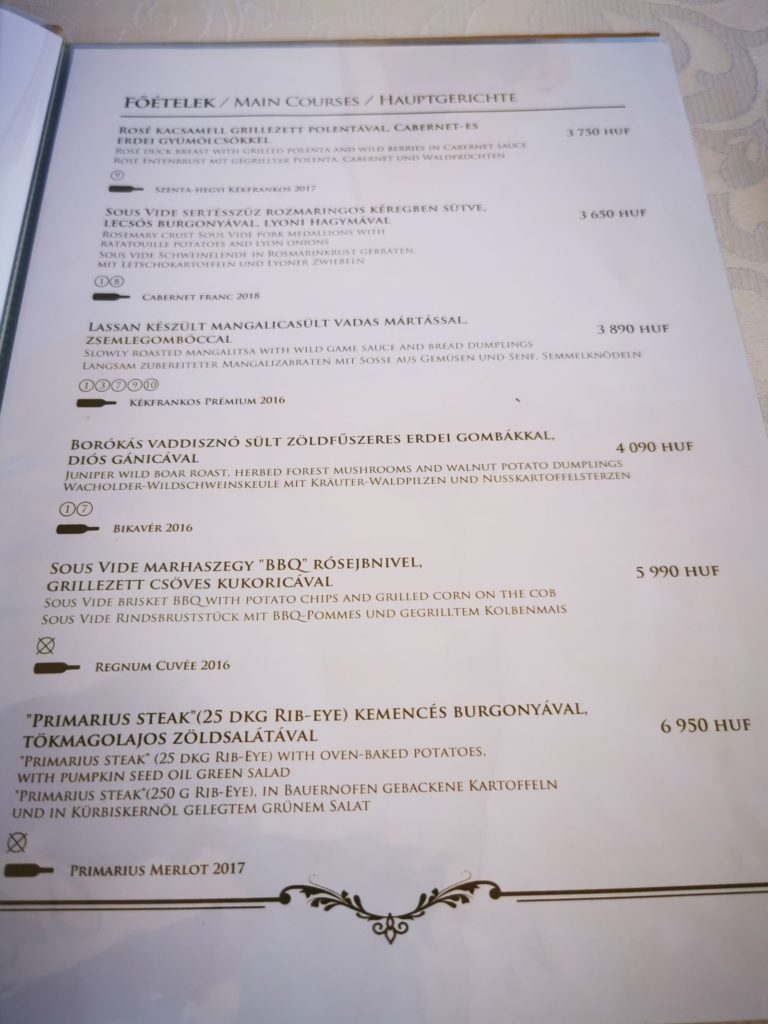 Ein Leckerbissen die Vorspeise: Wildgulaschsuppe… Oder als Hauptspeise der Mangalitzabraten mit leckerer Soße, die Wacholder Wildschweinkeule mit Kräuter-Waldpilzen, Sous Vide Schweinelende in Rosmarinkruste, etc. Die innovative Speisekarte liest sich sehr gut 😉
