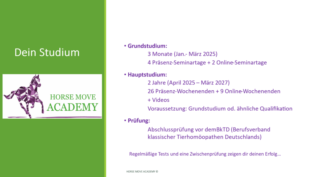 Die Ausbildung zum Pferde-Homöopathen ist umfangreich und anspruchsvoll, da sie sowohl ein tiefes Verständnis der Homöopathie als auch fundiertes Wissen über die Anatomie und Physiologie von Pferden erfordert.