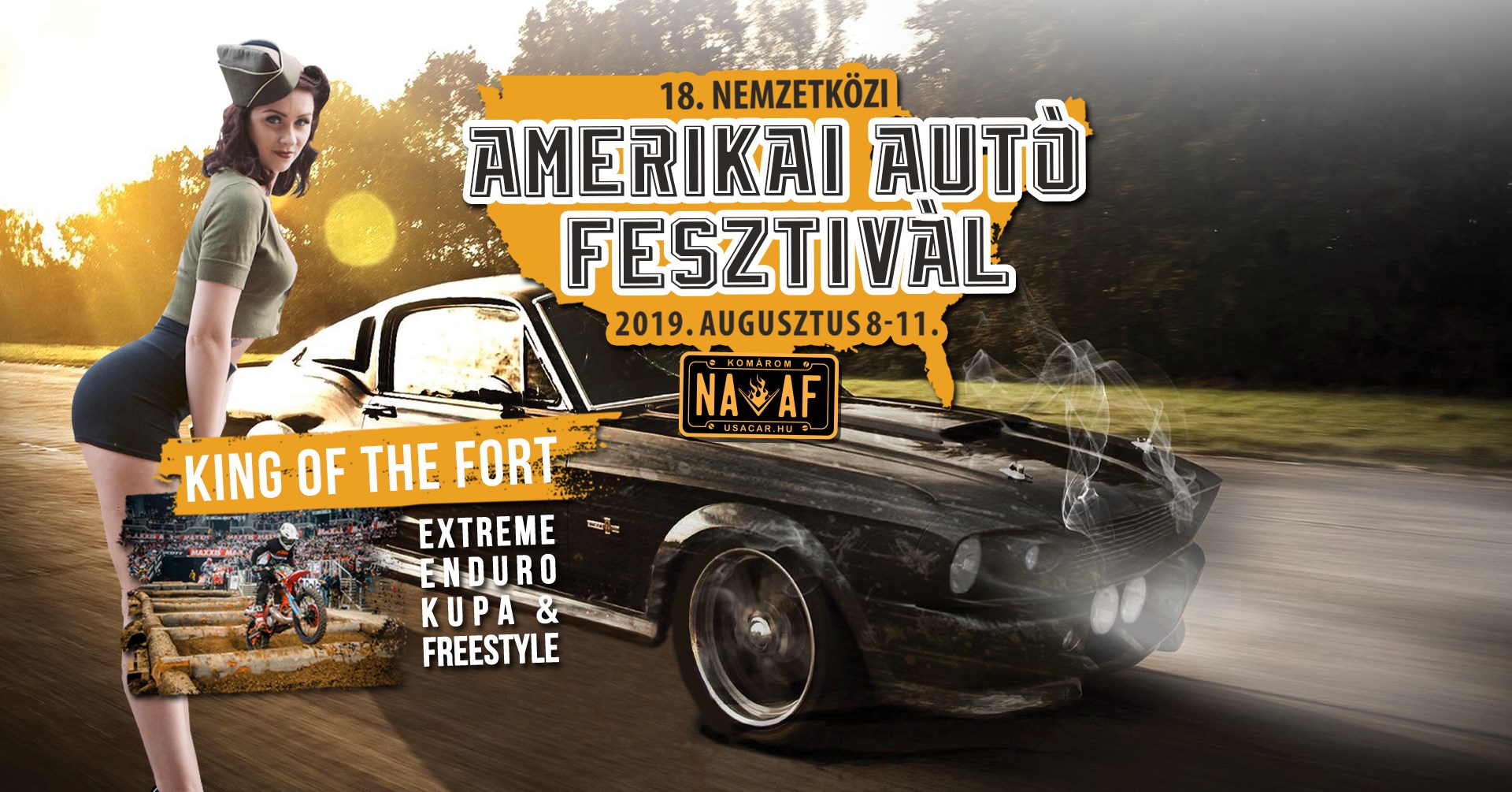 Komáromban, a Monostori Erődben négy napig több mint 1500 amerikai autó, Extrém Enduro Kupa és Freestyle Show, Low Rider Show, Off Road pálya, Big Foot Autótaposás és padlógázon pörgetett rock and roll bulik várják a látogatókat.