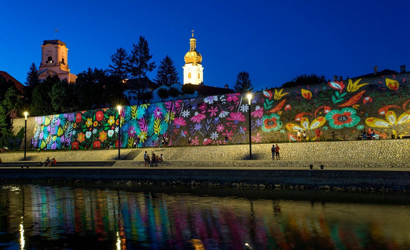 Auf der SzigetInsel in Györ, zwischen den Flüssen findet das künstlerische Event am Wochenende statt. Jede Menge Kunst, Musik und natürlich gutes Essen und Trinken bei Sonnenschein pur. Am Abend werden zahlreiche Lichtelemente noch dazu kommen und das Event extrem bunt färben. Allein die Stadtmauer ist schon sehenswert am Wochenende mit der Lichtmalerei.