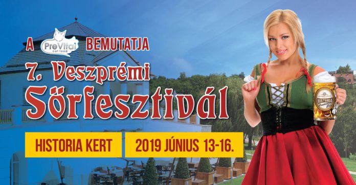 Veszprém egyik kedvenc szabadtéri programja, a Veszprémi Sörfesztivál 2019. június 13-tól 16-ig immáron 7-ik alkalommal várja a szórakozni vágyókat és a sörök szerelmeseit a Historia Kertben. 8 sörház, 40 féle söre és a Veritas Borkereskedés termékei közül