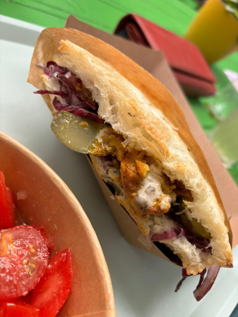 Die Focaccias sind göttlich lecker und knusprig, sie sind in verschiedenen Varianten erhältlich. Für Liebhaber würziger Aromen könnte eine Hähnchen-Shawarma-Focaccia die perfekte Wahl sein, die durch den köstlichen, eingelegten Gurkensalat eine sommerliche Frische erhält. Darüber hinaus gibt es auch panierten Fisch, paniertes Fleisch und Falafel.