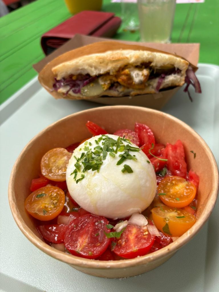 Es bietet nicht das übliche Strandessen, sondern hat einen besonderen Twist. Auf der Speisekarte finden sich Mezzes, Sandwiches aus Focaccia, Burrata und stets wechselnde Desserts.