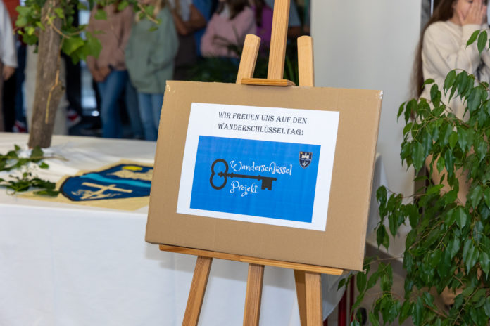 Die „Wanderschlüssel“-Kampagne wurde von der Landesselbstverwaltung der Ungarndeutschen zum Gedenken an die Ansiedlung von deutschen Familien in Ungarn vor 300 Jahren ins Leben gerufen. Anlässlich des diesjährigen runden Jubiläums startete eine aus Hartau stammende mit Tulpen bemalte Truhe im Frühling von Fünfkirchen (ungarisch Pécs) aus auf ihre Rundreise durch Ungarn. In der Woche vor den Herbstferien machte sie Halt in Győr, wo die Schulgemeinde der Audi Hungaria Deutsche Schule Győr – als eine von 38 Bildungseinrichtungen – im Rahmen einer farbenfrohen Veranstaltung die Kiste in Empfang nahm. Ziel der landesweiten Wanderschlüssel-Kampagne ist es im Gedenken an die Ansiedlung der Ungarndeutschen fundiertes Wissen zu vermitteln, das Gemeinschaftsgefühl zu vertiefen und das Ansehen der in Ungarn lebenden Deutschen zu stärken. In der Tulpentruhe ist die Kopie eines Schlüssels aus dem 18. Jahrhundert deponiert, der symbolisch das Tor zur Vergangenheit öffnet. Bevor die Truhe an die nächste Station der Rundreise weitergegeben wird, kommen jeweils kleine Gegenstände hinein, die an die Ereignisse von vor 300 Jahren erinnern sollen. In der Audi Hungaria Deutsche Schule Győr wurden die Ergebnisse des Projekttages in Bild und Film zusammen mit einem selbst gemachten Schlüssel in die Truhe gelegt. Mit diesem Andenken leistete die Schulfamilie einen schönen Beitrag zu dieser Jubiläumskampagne. Der Projekttag startete mit einem bunten musikalischen Programm der Kindergarten- und Schulkinder. Die ungarische Schulleiterin, Katalin Tálos, hob in ihrer Eröffnungsansprache die Bedeutung dieser Veranstaltung hervor, in deren Rahmen der Wanderschlüssel symbolhaft eine Tür zur Vergangenheit öffnet und die Schülerinnen und Schüler ihren Mitschülern an verschiedenen Stationen Geschichte, Leben und Kultur der Ungarndeutschen näherbringen. Die Themen der Präsentationen wurden im Vorfeld in den Nationalitätenzügen ausführlich behandelt, da die Abiturientinnen und Abiturienten auch im Fach Heimatkunde eine Abiturprüfung ablegen. Mit den Präsentationen war ein kleiner Teamwettbewerb verbunden, dessen Ergebnisse am Ende des Projekttages bekanntgegeben wurden. Den Schlussakkord der Veranstaltung bildete ein fröhliches ungarndeutsches Tanzhaus.