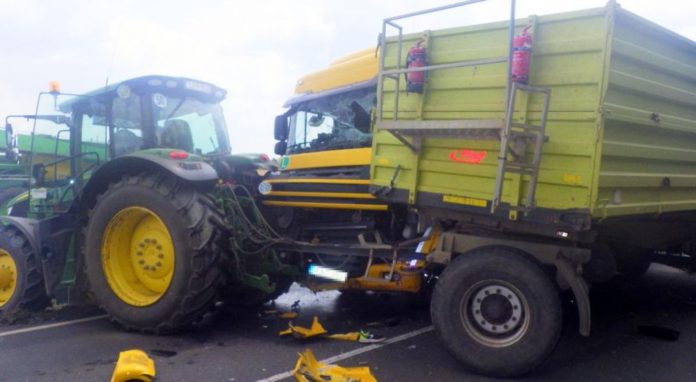 Ein LKW fuhr bei Alsószentiván in ein Traktorgespann. Der LKW-Fahrer hat nach ersten Angaben zufolge das überquerende Traktorgespann zu spät gesehen. Durch den Aufprall wurde der LKW-Fahrer verletzt und musste ins Krankenhaus gebracht werden. Der Traktorfahrer kam mit dem Schrecken davon. Die Bergung der Gespanne wurde durch einen Kran unterstützt. Es kam zu großen Staus auf dieser Strecke, die stark von LKWs befahren ist.
