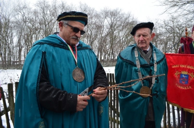 Der Heilige Vinzenz, der um 300 in Spanien als Märtyrer starb, wird je nach Region auf unterschiedliche Weise mit der Ernteprognose in Verbindung gebracht. Ein altes Sprichwort lautet: „Wenn der Vinzenz weint, wird der Keller voll sein“, was bedeutet, dass mildes Wetter an diesem Tag auf eine reiche Weinlese hindeutet. Der Heilige Vinzenz wird nicht nur von ungarischen Winzern verehrt, sondern auch in Frankreich, Süddeutschland und Österreich. Sein Name wird volkstümlich als „Vin-Cent“ (hundertfacher Wein) interpretiert. Nach der Tradition werden die abgeschnittenen Reben in warmem Wasser aufbewahrt, um aus den Knospen Rückschlüsse auf den richtigen Zeitpunkt für den Rebschnitt zu ziehen. Zum Abschluss der Veranstaltung werden neue Mitglieder des St. Vinzenz-Weinordens am Árpád-Denkmal feierlich aufgenommen.