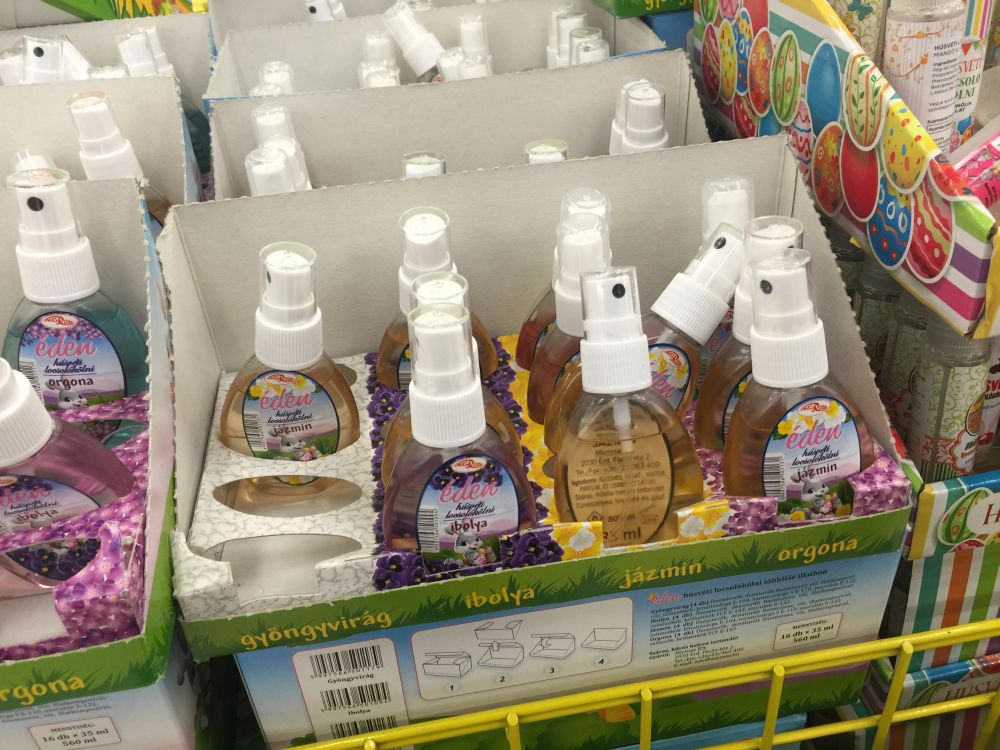 In den Geschäften gibt es bereits jetzt schon spezielle Parfumflaschen mit Osteremblemen und großen Werbeaktionen zu kaufen. Dies nutzt man in Ungarn zur Begiessung der Frauen. Ein alter Brauch, daß die Frauen/Mädchen am Ostermontag mit Wasser begossen werden. Mittlerweile nutz man Parfum dazu. Interessant wie die Industrie direkt darauf aufgesprungen ist und ein neues Osterprodukt erstellt hat.