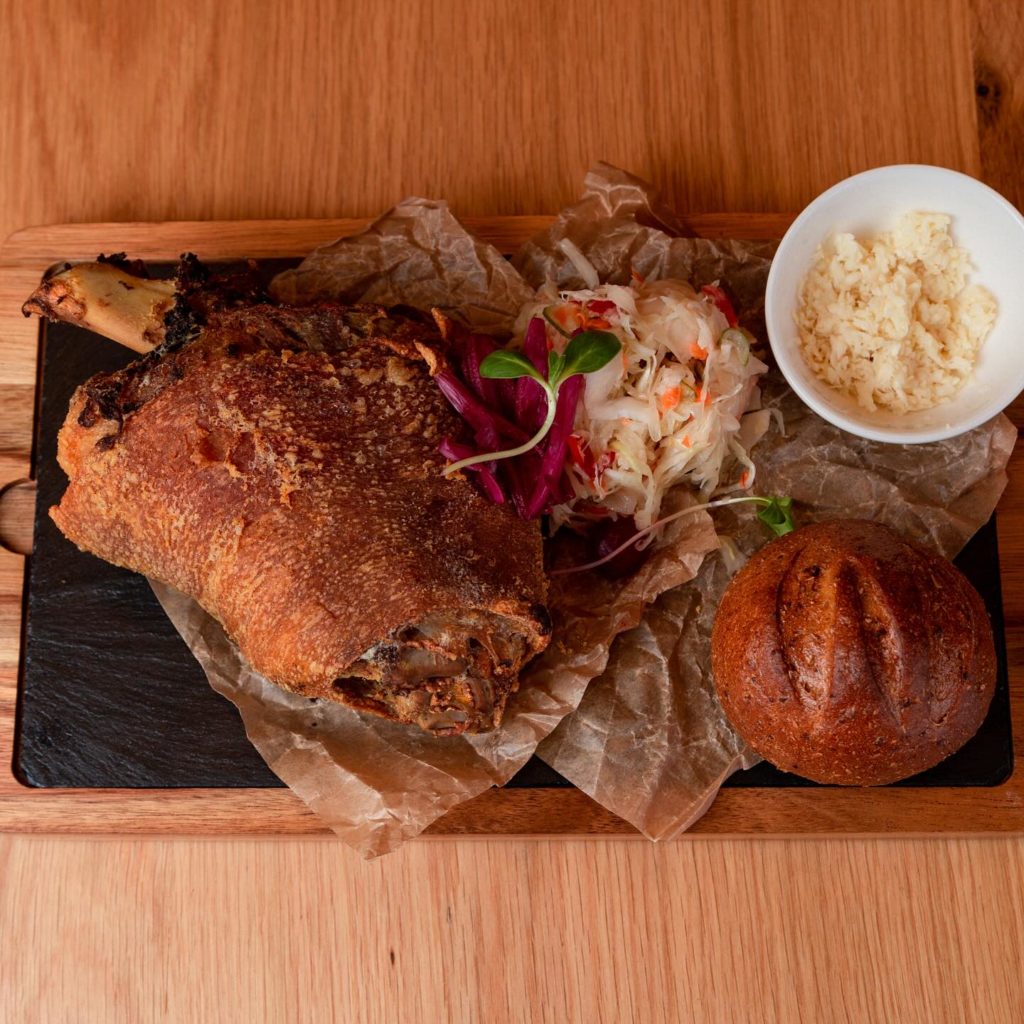 Zu den Bieren gibt es auch köstliche Gerichte, von klassischen Brauereigerichten bis hin zu Spitzen Steaks ist alles zu finden. Man bemüht sich, lokale, ungarische und regionale Zutaten für die meisten Gerichte zu verwenden. Das Bier spiegelt sich auch in den Speisen wieder. Im Gebäck verwendet man Malz, in den Soßen ebenfalls Bier. Eine breite, bunte Auswahl an Speisen erwartet die Besucher.