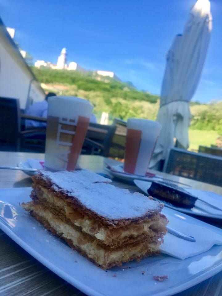 Bei den herrlichen Sommertemperaturen lohnt es sich den tag in einem der schönen ungarischen cafés ausklingen zu lassen. Hier hat uns eine Ungarn-Bloggerin eine besonders schöne Aussicht zukommen lassen. Natürlich im Vordergrund der leckere Apfelkuchen aber auch der Hintergrund kann sich mit Pannonhalma sehen lassen…Da schmeckt der Kuchen gleich doppelt so gut.