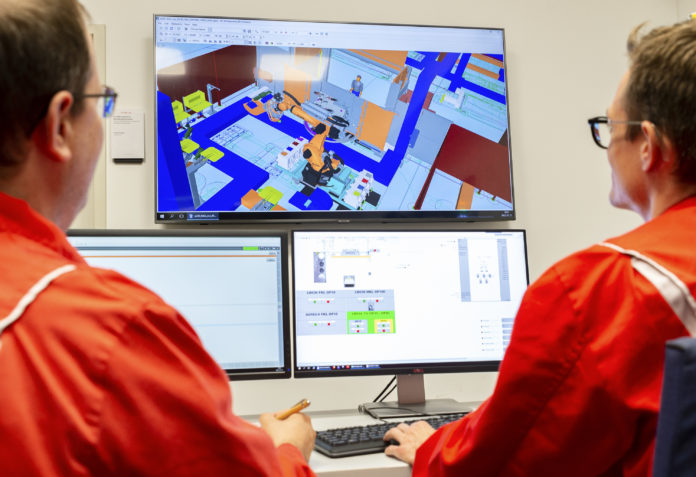 Die 3D-Modelle kommen auch in anderen Bereichen zum Einsatz: Dank des neuen Fehlersuch- und Schulungszentrums im Werkzeugbau ist die Fortbildung der Mitarbeitenden nicht mehr nur an den physisch aufgebauten Produktionsinseln möglich. Im sogenannten Trouble Shooting Training Center werden die Mitarbeitenden anhand einer virtuellen Produktionsumgebung in der Anlagenbedienung und der schnellen und fachgerechten Behebung von Störungen an der Produktionslinie geschult.