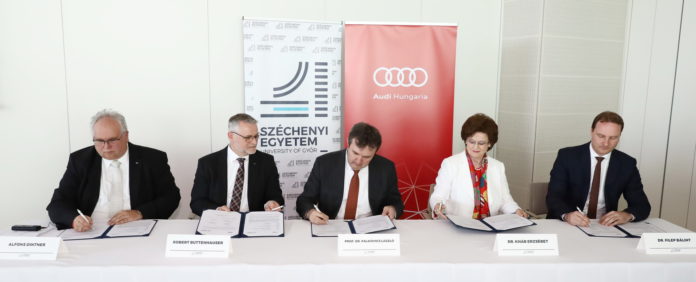 Nach langjähriger, erfolgreicher Zusammenarbeit zwischen der Audi Hungaria und der Széchenyi István Universität erfolgte 2015 die Gründung der Audi Hungaria Fakultät für Fahrzeugtechnik, die heute sieben Lehrstühle bündelt. Das Unternehmen und die Universität haben in landesweit einzigartiger Weise eine duale Ingenieurausbildung eingeführt. Darüber hinaus betreiben sie zahlreiche Forschungsprojekte, insbesondere im Bereich der technischen Entwicklung.