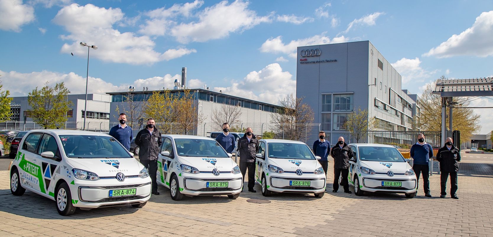 Audi Hungaria arbeitet seit letztem Jahr klimaneutral. Das Unternehmen setzt sich für Nachhaltigkeit ein und wird dabei auch von seinen Dienstleistungspartnern unterstützt. Bestes Beispiel dafür ist, dass die Partner des Unternehmens für ihre Arbeit auf dem Werksgelände immer mehr Elektroautos verwenden. Auch die Patent Gruppe, einer der größten Dienstleister der Audi Hungaria hat damit begonnen, seine Autoflotte am Produktionsstandort der AUDI HUNGARIA Zrt. umzurüsten. Auch der Security Dienstleister setzt sich für den Umweltschutz ein und tauscht zum Werksschutz vier seiner bisherigen Autos mit herkömmlichem Antrieb gegen vier neue elektrische Volkswagen Up! Modelle aus. Die Patent-Gruppe macht damit den ersten Schritt zur umweltbewussten Erneuerung ihres Fuhrparks, der zur Dienstleistung erforderlich ist.