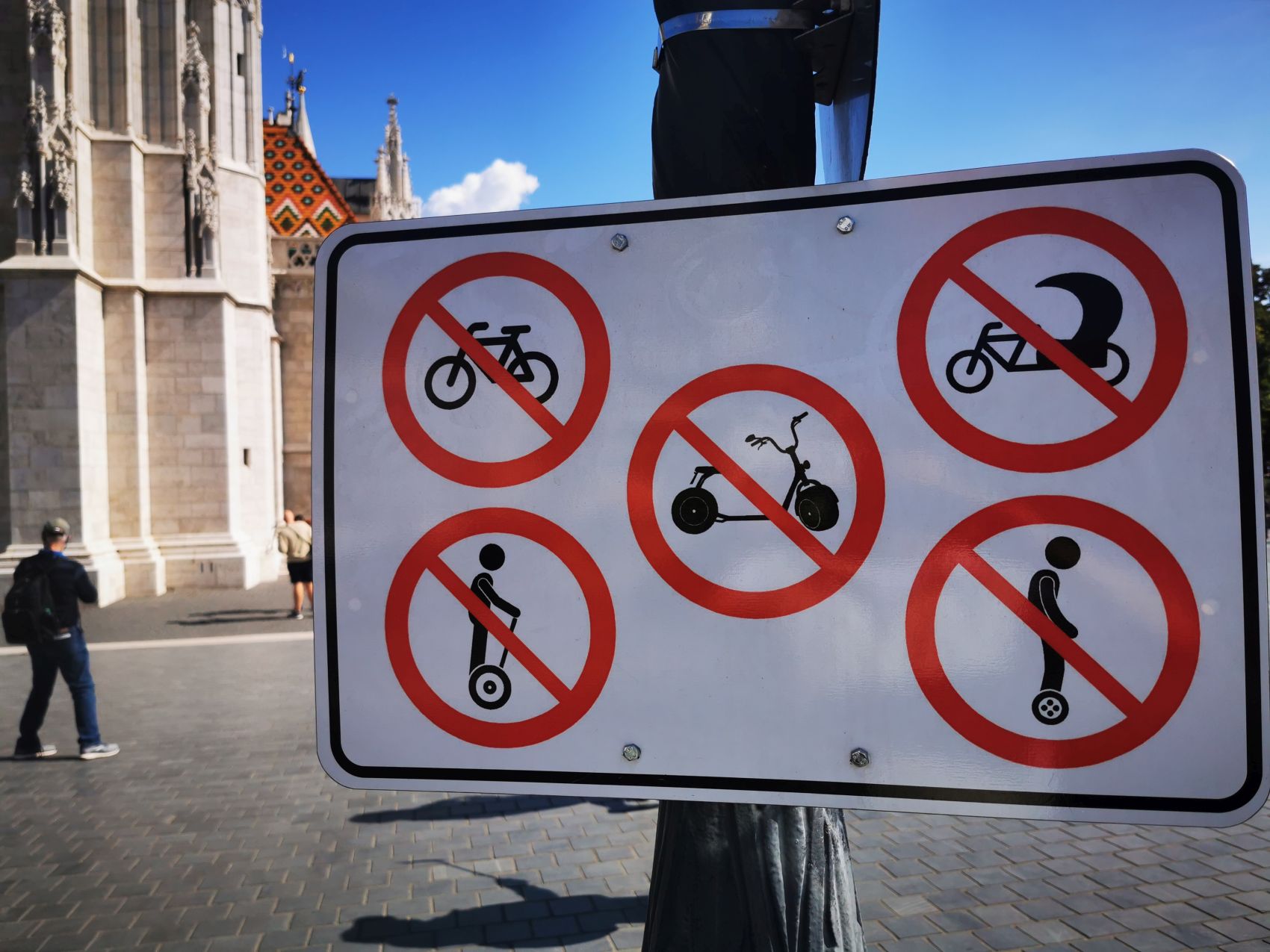 Das Burgviertel von Budapest mit der Fischerbastei…Hier beginnt so manche Sightseeing Tour in Budapest. Eine wunderschöne Aussicht geniesst man von hier oben auf die Hauptstadt. Zehntausende Touristen kommen täglich hierher um die Sehenswürdigkeit zu bewundern, da wird es hier und da schonmal eng…Damit es nicht noch enger wird hat man jetzt das Befahren mit E-Rollern und ähnlichen Vehikeln dort verboten. Mit Sicherheit auch Auslöser dafür, der ein oder andere Unfall in naher Vergangenheit.