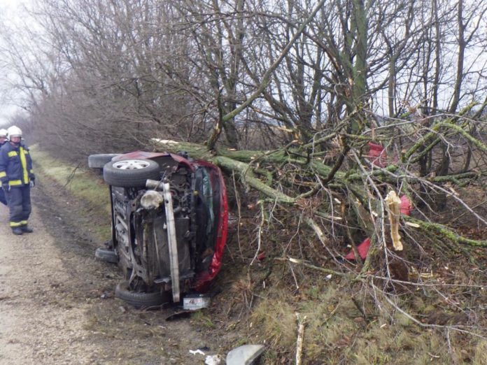 Ein Auto driftete von der Straße ab, kollidierte mit einem Baum und blieb auf der Seite stehen. Am Morgen des 8. Februar ereignete sich dieser Unfall zwischen Mezőfalva und Nagyvenyim. Das Fahrzeug wurde von der Feuerwehr aus Dunaújváros und Mezőfalva geborgen und gesichert. Der Fahrer war alleine unterwegs und wurde bei dem Unfall glücklicherweise nur leicht verletzt.