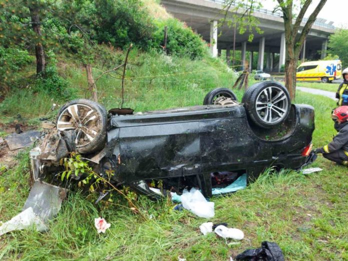 Am 17. Mai kam ein PKW von der Fahrbahn der Autobahn M1 in Győr und stürzte bei der Királyszéki Straße ab, das Auto blieb auf dem Dach stehen. Die Feuerwehr Győr kam zur Unfallstelle und sicherte sofort die Umgebung und das Fahrzeug. Der Fahrer und die zwei Passagiere mussten mit schweren Verletzungen ins Krankenhaus gebracht werden.