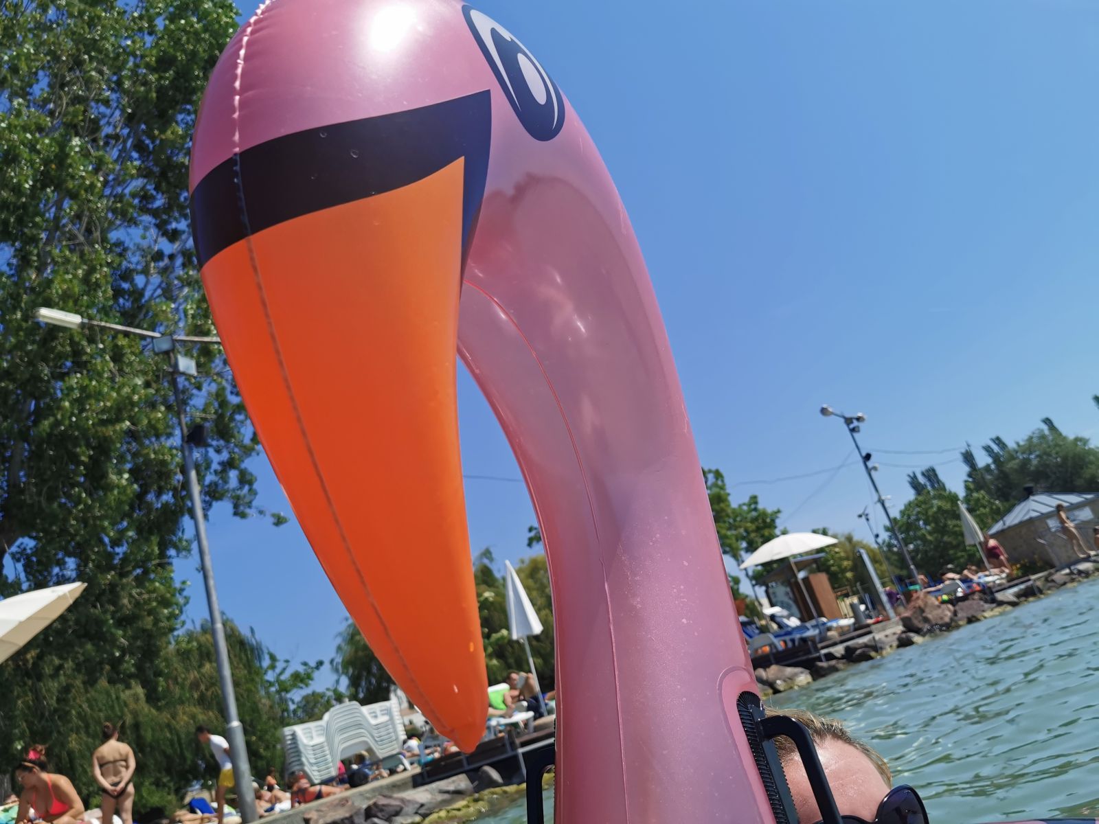 Was liegt im Trend der Badeschwimmtiere in diesem Sommer vorne? Dominieren die rosa Flamingos oder eher die bunten Einhörner auf Badeseen, in Schwimmbädern? Am Balaton lhaben die Flamingos den Schnabel vorne. Hier dominiert klar ROSA.