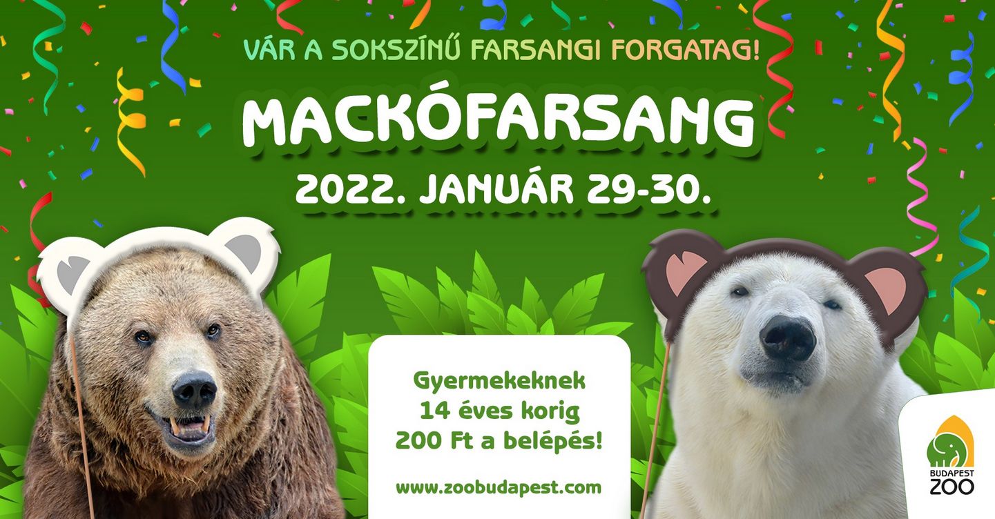 Alle Kinder bis 14 Jahren, die am Wochenende (29. und 30. Januar 2022) in den Budapester Zoo in Verkleidung oder mit einem Teddybären kommen, müssen lediglich 200 HUF Eintritt zahlen. Geplant sind zahlreiche Bärenprogramme und andere Tierprogrammen für die ganze Familie.