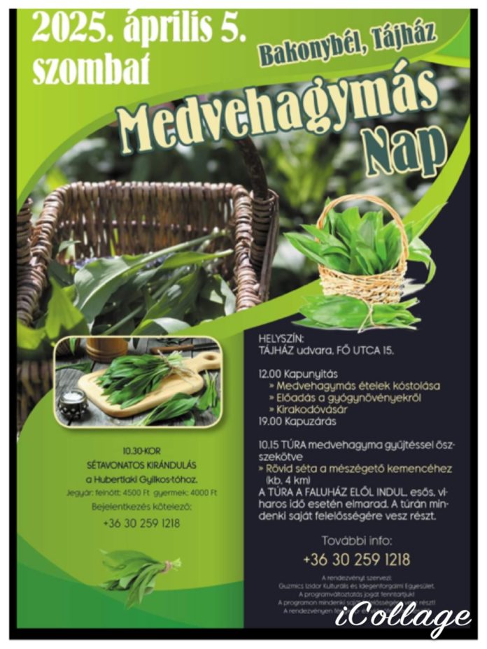 Im Rahmen organisierter Wanderungen unterschiedlicher Länge und Schwierigkeitsgrade können die Besucher den zauberhaften Bakony entdecken – einen der bevorzugten Lebensräume des Bärlauchs. Die Gäste erwarten Kostproben von bärlauchhaltigen Köstlichkeiten, ein Markt mit regionalen Produkten und viele weitere Aktivitäten.