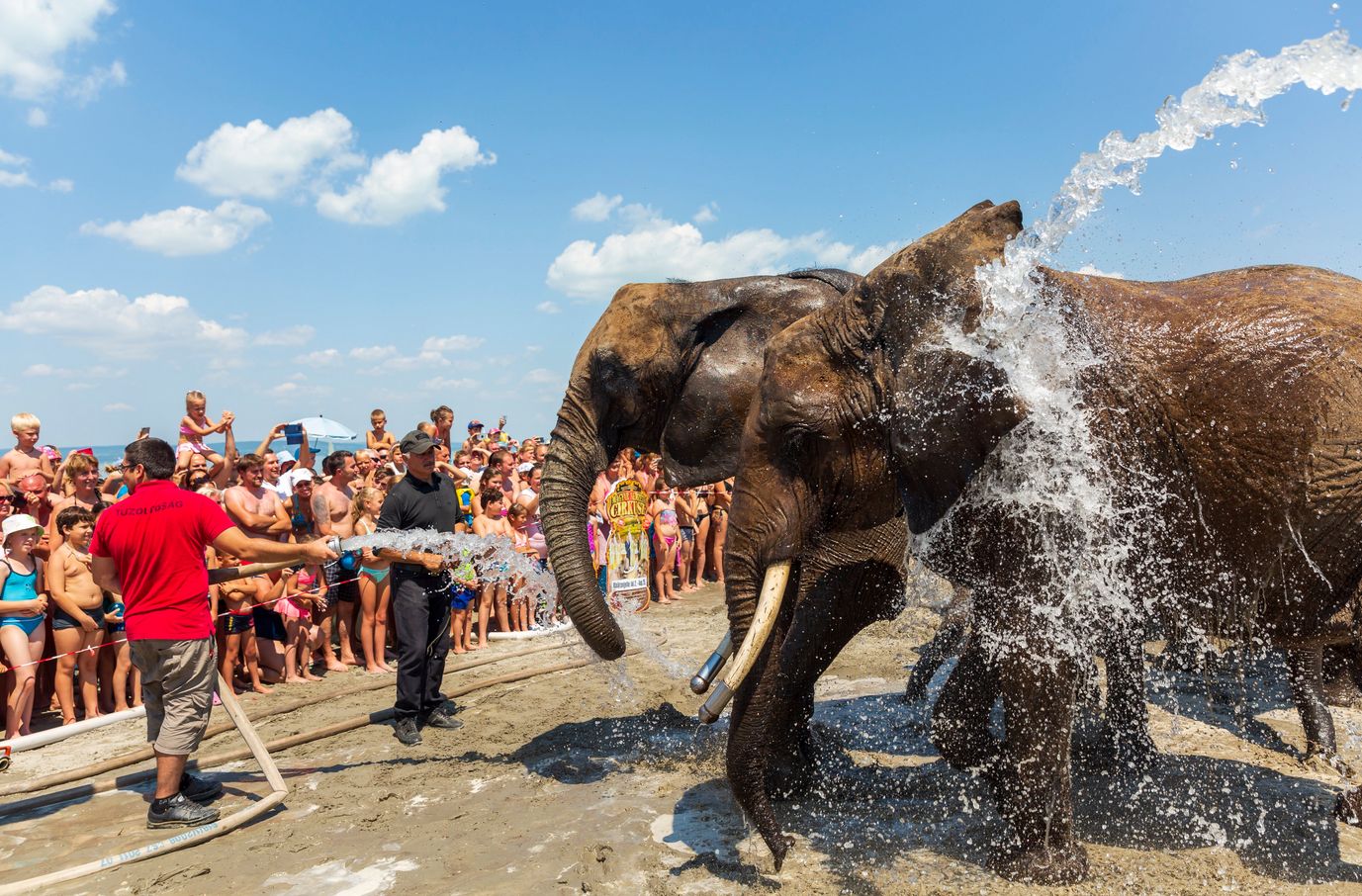 In Balatonlelle waren die Elefanten los am Wochenende…Bei einer Zirkusparade des großen Ungarischen Zirkus verlief die Parade direkt am Balatonufer entlang und hatte somit eine eindrucksvolle Kulisse. Bei der Parade nahmen die Elefanten eine Dusche bei warmen temperaturen am Balaton. Ein seltenes Bild aber den Elefanten gefiel das kühle Nass auf jeden Fall. Tausende menschen liessen sich dieses untypische Bild nicht entgehen.