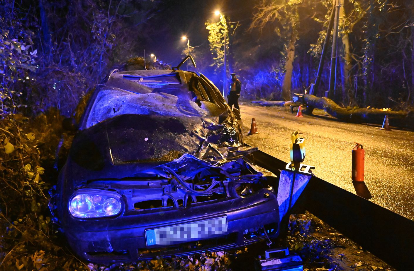 Im 2. Bezirk Budapests hat sich in der Nacht ein schwerer Verkehrsunfall ereignet. Ein großer Baum ist umgestürzt und hat dabei ein Fahrzeug getroffen. Der PKW wurde von der Fahrbahn gedrückt und blieb total beschädigt im Strassengraben liegen. Die Feuerwehr musste den Fahrer schwerverletzt aus dem Autowrack retten. Die Polizei ermittelt nun die Unglücksursache mit der Frage warum der Baum hier an dieser Stelle und diesem Moment umgestürzt ist. Die Fahrbahn (Nagykovácsi Strasse) war bis in die Morgenstunden gesperrt.