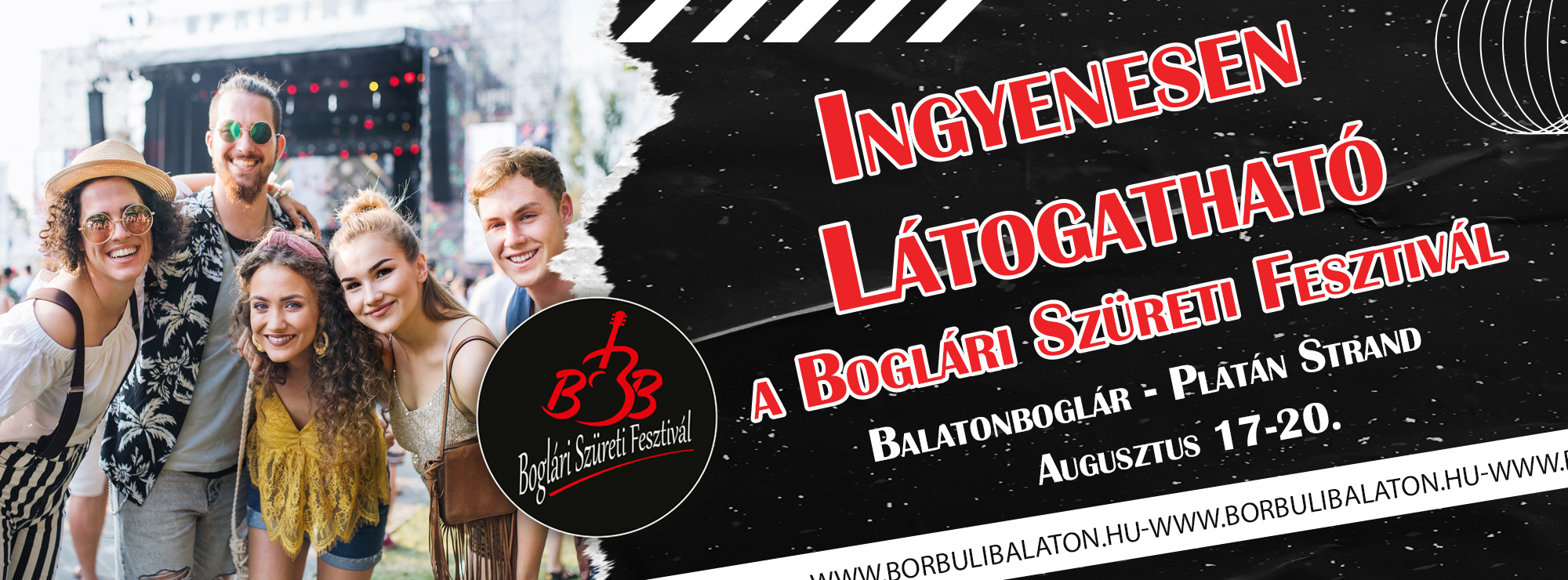 Das Boglári Weinlese-Festival ist eine der ältesten Veranstaltungen in Ungarn, die im Jahr 2023 zum 46. Mal zwischen dem 17. und 20. August stattfindet. Strand, Musik, Konzerte, Erlebnisse, einheimische Weine und Unterhaltung erwarten die Besucher. Mit hervorragenden Programmen, Konzerten, Handwerks- und Flohmärkten, der kulinarischen Elite des Landes sowie den besten Weinen von 22 Weinregionen Ungarns begrüßt das Team des Boglári Weinlese-Festivals die Besucher auf über 80.000 Quadratmetern mit mehr als 100 Darbietungen an 5 Tagen.