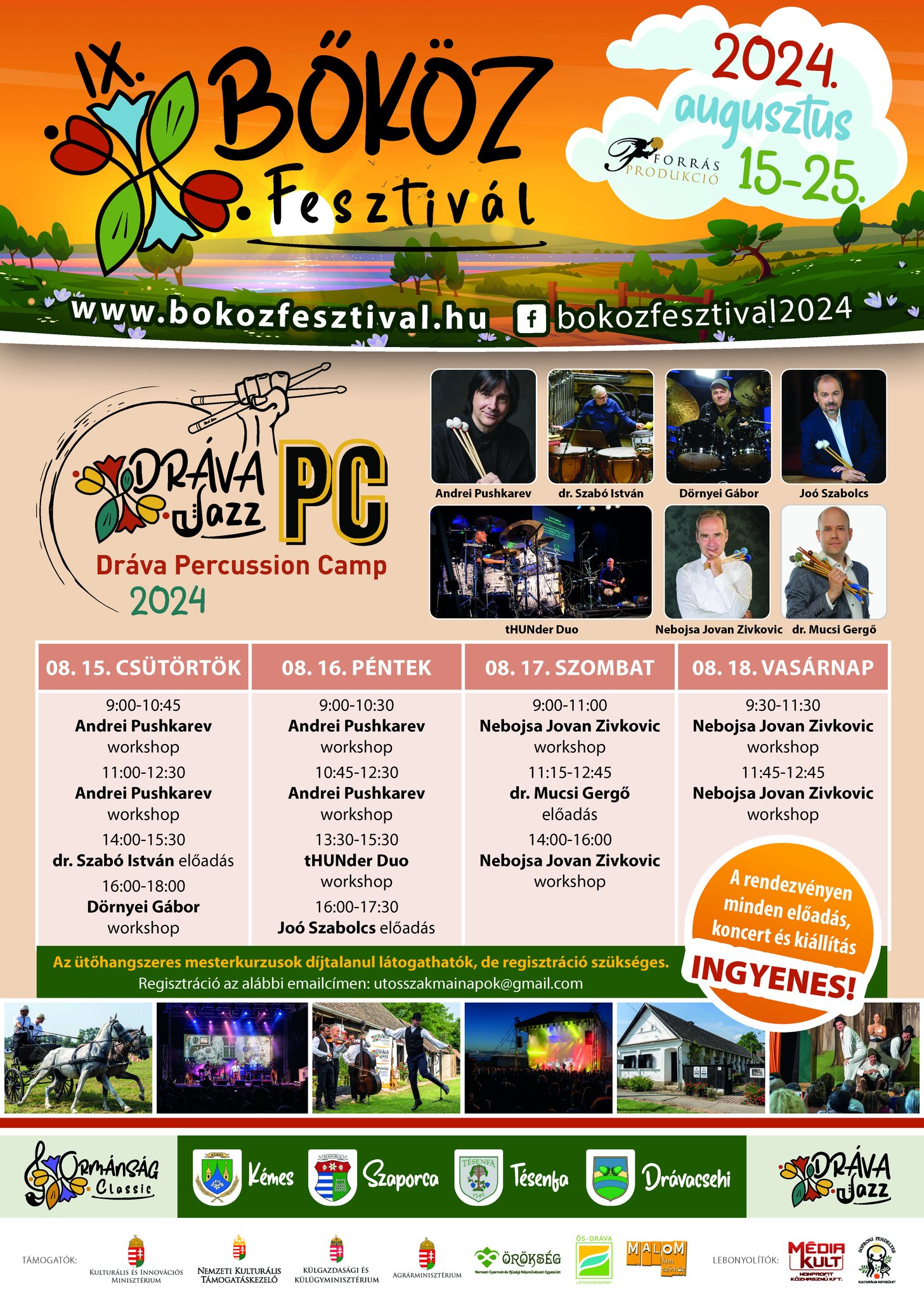 Als Neuheit wurde unter der Leitung des Kossuth-Preisgekrönten Perkussionisten Kornél Horváth das Dráva Jazz Event ins Leben gerufen, bei dem Weltstars auftreten: So kommen der amerikanische Gitarrist und Komponist Stanley Jordan und die schwedische Formation Dirty Loops. Neben den Jazzkonzerten können junge, talentierte Schüler und Studenten an Meisterkursen für Schlaginstrumente teilnehmen. Die Weltstars treten am Abend des 17. August auf der großen Bühne des Bőköz Festivals am Hétöles-See in Szaporca auf.
