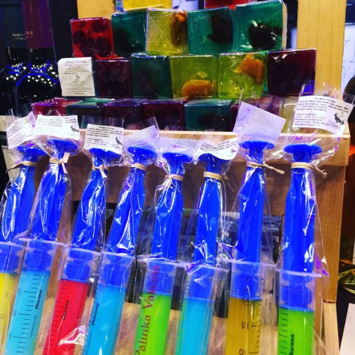 Palinka wird in Ungarn derzeit nicht nur getrunken. Der Trend geht zu sämtlichen chemischen Zuständen des guten Stoffs. Ob in Gelform oder als Trinkinjektor in allen tollen Farben oder als Bonbon…
