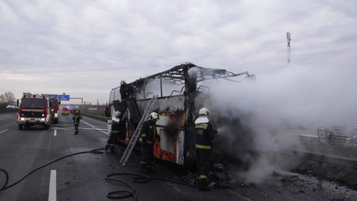 Ein Bus fing am Donnerstagmorgen auf der Autobahn M0 in der Nähe von Szigetszentmiklós Feuer. Als die Feuerwehr am Einsatzort eintraf, stand der Bus bereits in Vollbrand, die 47 Passagiere konnten das Fahrzeug noch rechtzeitig, ohne Verletzungen verlassen. Das Feuer wurde von der Feuerwehr von Szigetszentmiklós gelöscht. Während der Brandbekämpfung musste die Autobahn gesperrt werden.