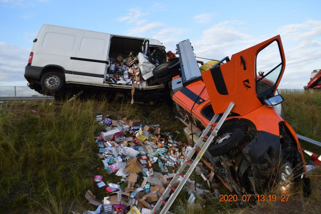 Ein Klein-Lastwagen fuhr am Nachmittag auf der Autobahn M4 in der Nähe von Pilis auf die Ladefläche eines Transporters. Infolge der Kollision wurde der Fahrer im Klein-Lastwagen eingeklemmt. Die Feuerwehr aus Monor befreite den eingeklemmten Fahrer mit einem Spannschneider aus den Trümmern. Die Ladung des Transporters, bei der es sich um verschiedene chemische Haushaltswaren handelte, wurde teilweise neben dem Fahrzeug verschüttet. Der Klein-Lastwagen beförderte ein Herbizid in einem Tank, der bei der Kollision beschädigt wurde und auszulaufen begann. Unter der Leitung des mobilen Katastrophenschutz-Labors der Hauptstadt und des Katastrophenschutzdienstes vom Landkreis Pest beseitigten die Feuerwehrleute weitere Lecks und sicherten den Ort. Während der technischen Bergung der Fahrzeuge wurde der betroffene Abschnitt der Autobahn gesperrt und der Verkehr umgeleitet.