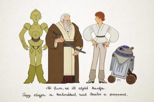 Marton Ádám grafikus munkái először a Context Us Facebook oldalán tüntek fel, ám témáját tekintve meglehetősen egyedi alkotások. A művész ugyanis a Star Wars: Új remény című, klasszikussá vált történetet dolgozta fel a Magyar Népmesék stílusában.