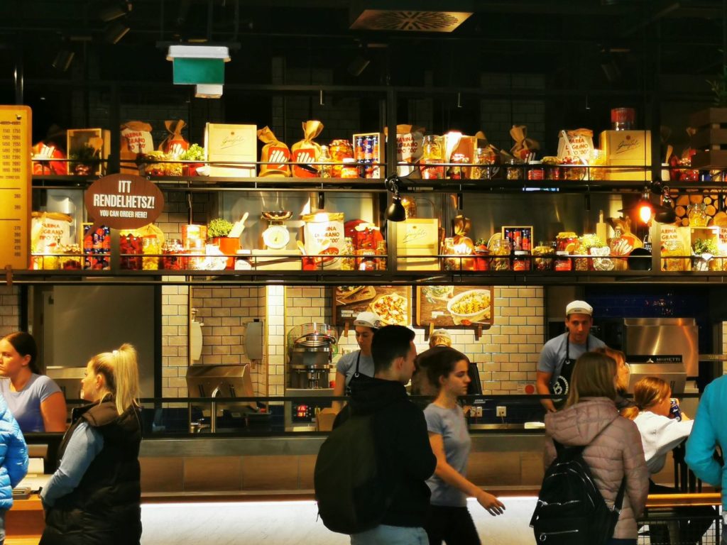 Das neue Etele Shopping Center ist erst wenige Wochen geöffnet. Wir schauen uns hier mal die Gastroebene an und haben das Belozzo Restaurant gefunden. Gute italienische Küche zu fairen Preisen in coolem Ambiente. Die große Showcooking Fläche ist bereits von weitem sichtbar und aufwendig dekoriert. Ob Pizza, Pasta oder Salat – Hier wirbeln viele Köche um das passende auf die Teller zu bringen.