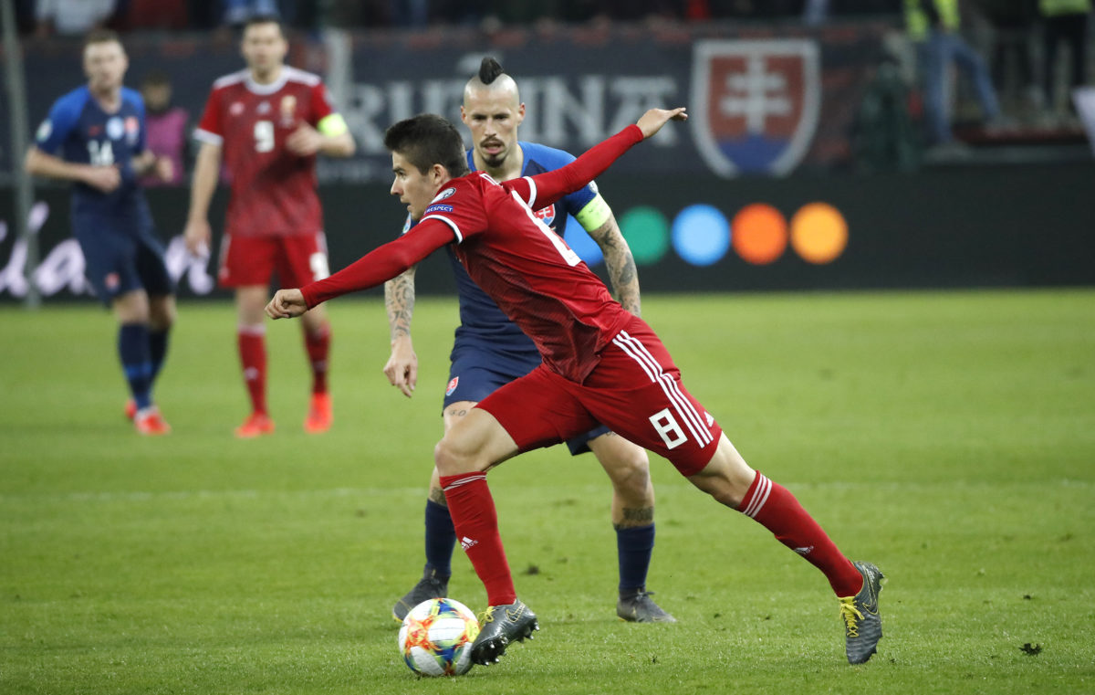 Die Ungarische Fußballmannschaft verliert als Gast in Trnava 2-0 gegen die Slowakei, bei der Europameisterschaft Qualifizierung.