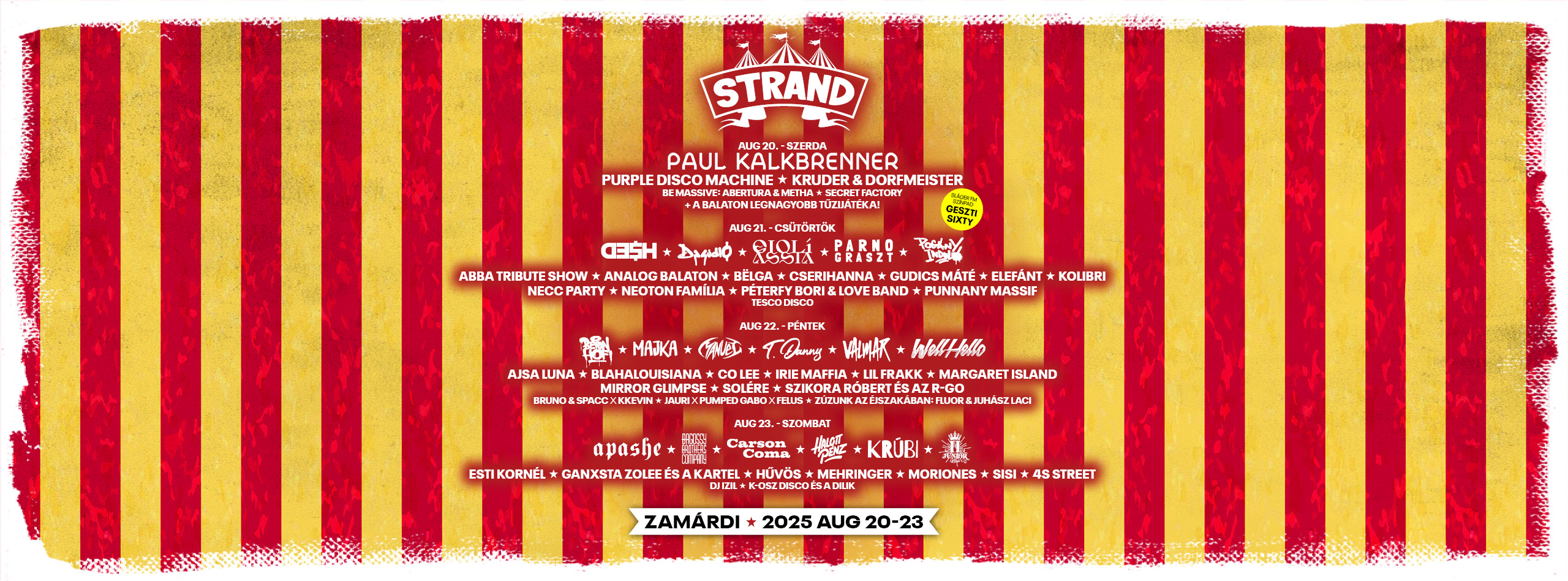 Nach vielen Sommerauftritten verabschiedet sich Margaret Island beim Strand Festival von seinem Publikum. Zu den Legenden zählen außerdem Neoton Família, Róbert Szikora & R-Go, die ABBA Tribute Show sowie Ganxsta Zolee és a Kartel, die ihr 30-jähriges Jubiläum feiern.