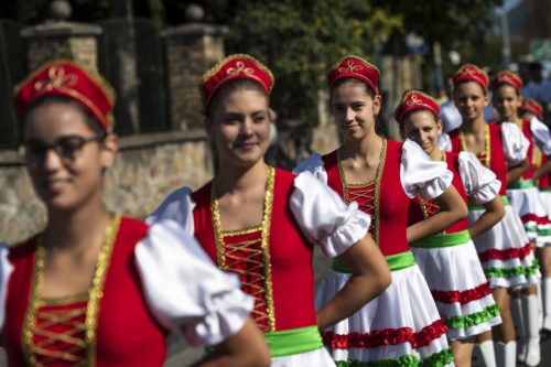Résztvevõk az 54. Badacsonyi Szüret felvonásán Badacsonytomajon 2018. szeptember 9-én.