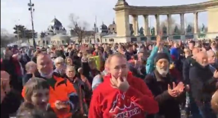 Seit 11 Uhr ziehen Tausende, wie auch auf den aktuellen Bildern zu sehen ist auf dem Budapester Heldenplatz auf. Man demosntriert gegen die weitere Lockdown Massnahme und gegen die weitere Sperrung von Hotels und Restaurantbetriebe. Die Menschen sind müde und haben keine Geduld mehr, teilweise seien die Massnahmen überzogen und unwirksam, die Wirtschaft leidet immer mehr…Dies und mehr hört und liest man von den Demonstranten die bisher friedlich auf die Situation aufmerksam machen. In Wien protestieren seit Wochen die Menschen auf den Strassen gegen die Coronamassnahmen. Auch in anderen Städten kippt die Stimmung langsam. Auffällig bei der Veranstaltung, wie auch auf den Bildern zu sehen: Die AHA-Regeln wurden bisher nicht wirklich eingehalten.