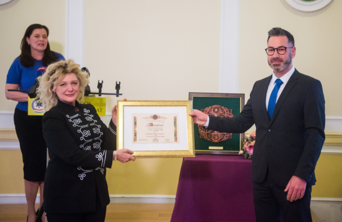 Kinga Szőnyi, die Präsidentin des Verbandes der ungarischen Frauen, und Mónika Dunai, Abgeordnete, überreichten am Sonntag in Budapest die Auszeichnung „Für ungarische Familien“ an Gábor Csató, Director des Nationalen Rettungsdienstes (OMSZ).