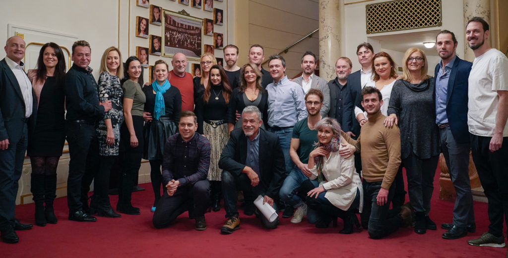Die unterhaltsame Probe begann mit dem symbolträchtigen Duett der drei Don Quijote / Cervantes und Sancho, beantwortet von Aldonza, dem Lied von Dulcinea. Tamás Bolba, der Dirigent des Stückes, spielte Klavier. Charaktere, Schöpfer und Pressestab Kiss-B. Atilla, Sowie der begrüßung des Generaldirektor des Budapester Operettentheaters.
