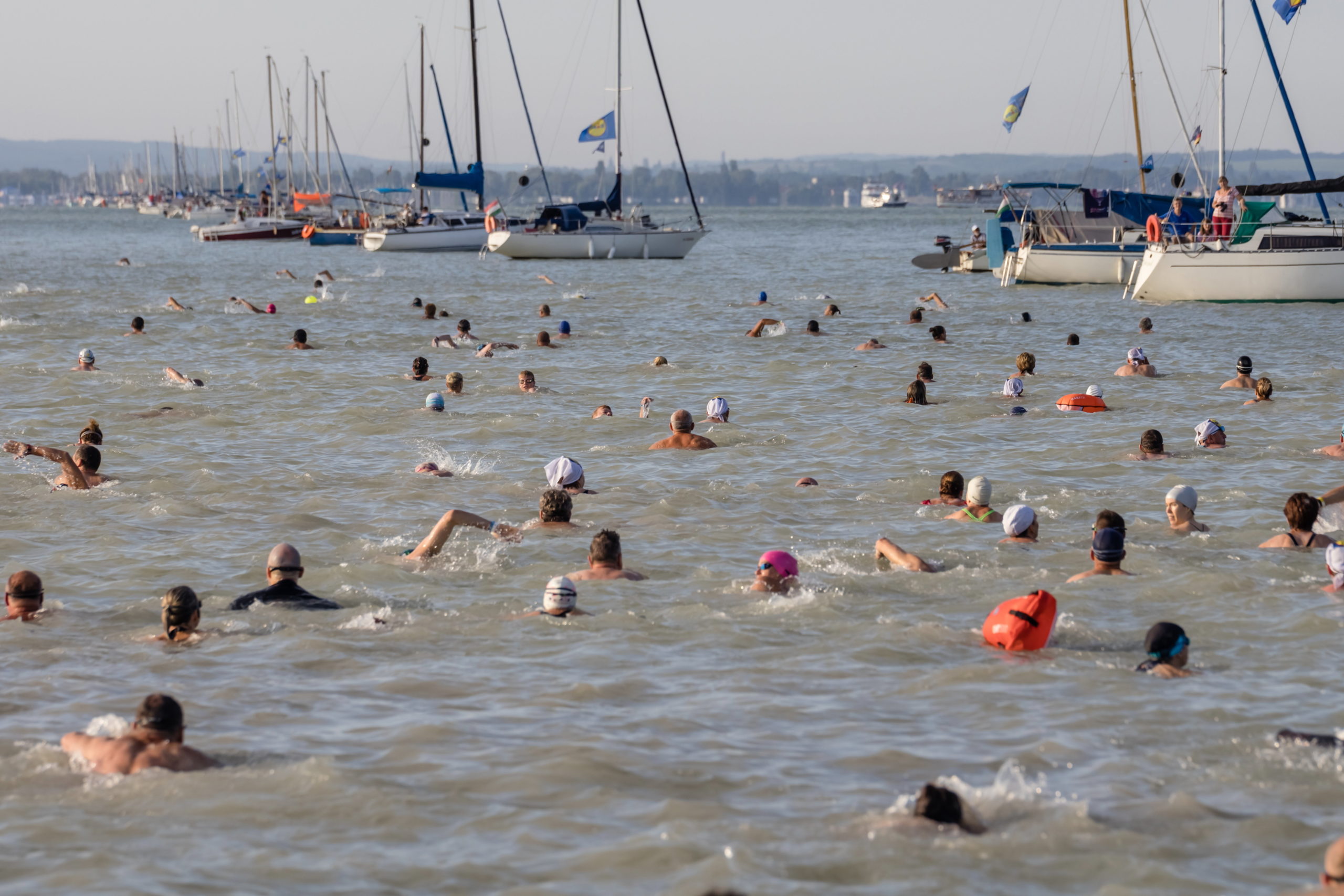 Seit heute morgen 7 Uhr befinden sich zahlreiche Schwimmer mehr im Balaton. Heute läuft das 41. Lidl Balaton Durchschwimmen. Von Révfülöp nach Balatonboglár. In Révfülöp wurde gestartet und die Schwimmer können sich nach einer ärztlichen Untersuchung auf die 5200 Meter lange Strecke begeben. Auf dem gesamten Weg stehen Boote zur Sicherheit bereit, die im Notfall mit Rettungsschwimmern besetzt, eingreifen können. Das Wetter spielt heute mit und bei strahlendem Sonnenschein werden die Schwimmer mit sommerlichen Temperaturen und schönen Farben im Balaton belohnt. In Balatonboglár bereitet man sich bereits auf die Ankunft der ersten Schwimmer vor. die soeben eintreffen. (Stand: 10:00 Uhr) Das Event sollte vorerst gestern bereits stattfinden, wurde jedoch aufgrund der Wetterlage auf heute verschoben.
