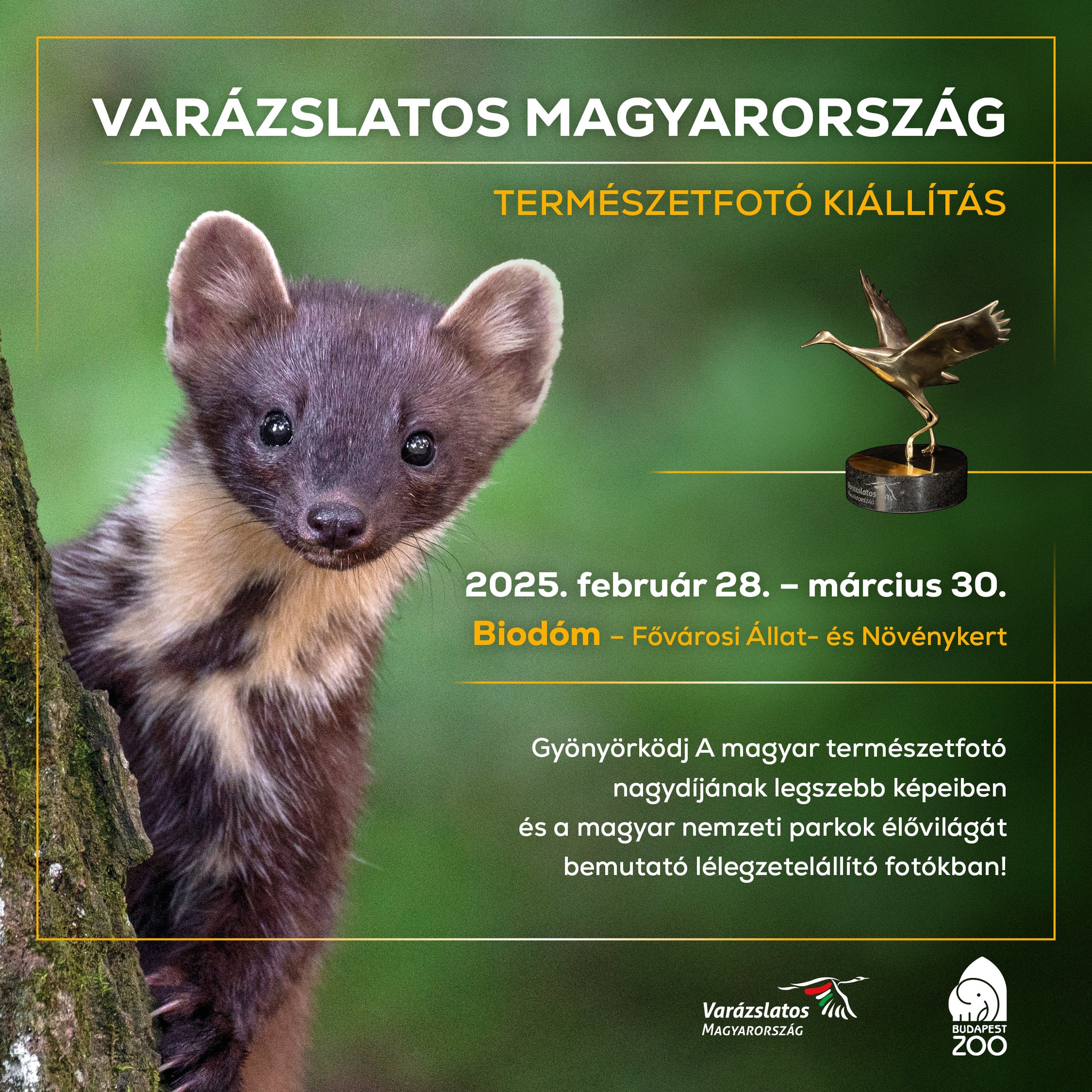 Die Ausstellung der besten preisgekrönten Naturfotografien des Wettbewerbs „Magisches Ungarn“ präsentiert die herausragendsten Werke der ungarischen Naturfotografie. Die Ausstellung ist vom 28. Februar bis 30. März im Biodóm des Budapester Zoos zu besichtigen.